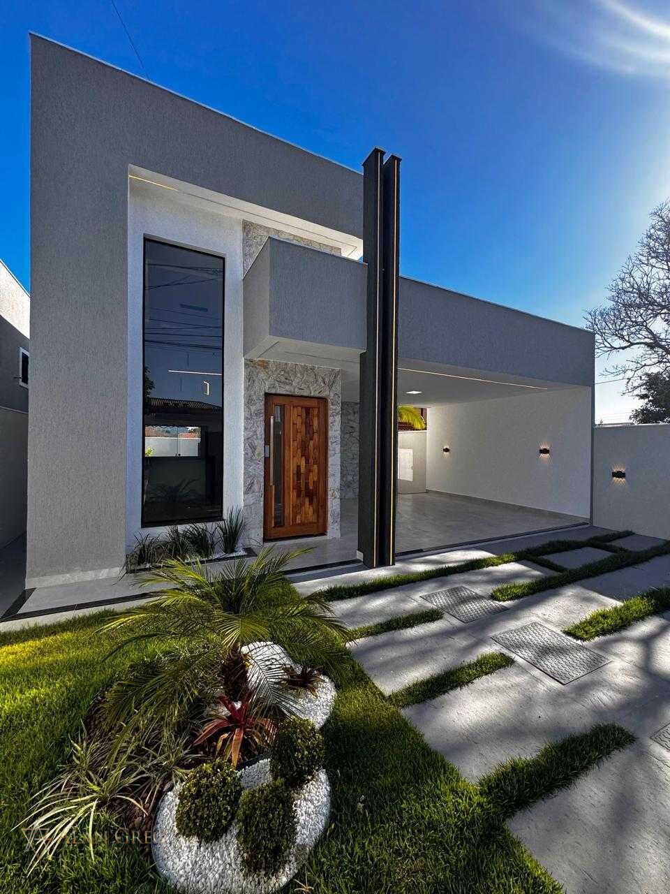 A casa conta com sala ampla com pé direito duplo, cozinha conceito aberto integrada à área gourmet com churrasqueira, piscina de alvenaria, chuveirão, lavabo e paisagismo planejado.